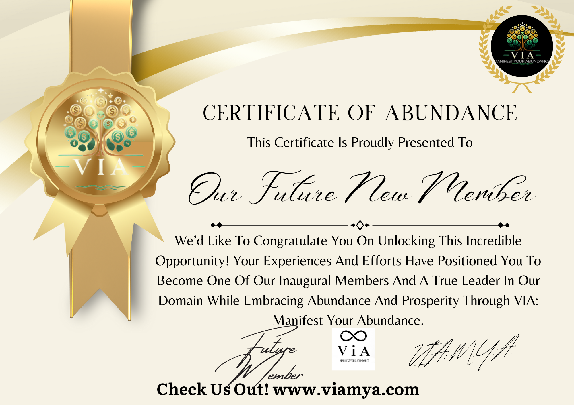 You will also gain access to exclusive VIAMYA merchandise 🎁 including luxury apparel and lifestyle pieces designed to help you represent the brand, express your style, and embody the energy of abundance in your own way.